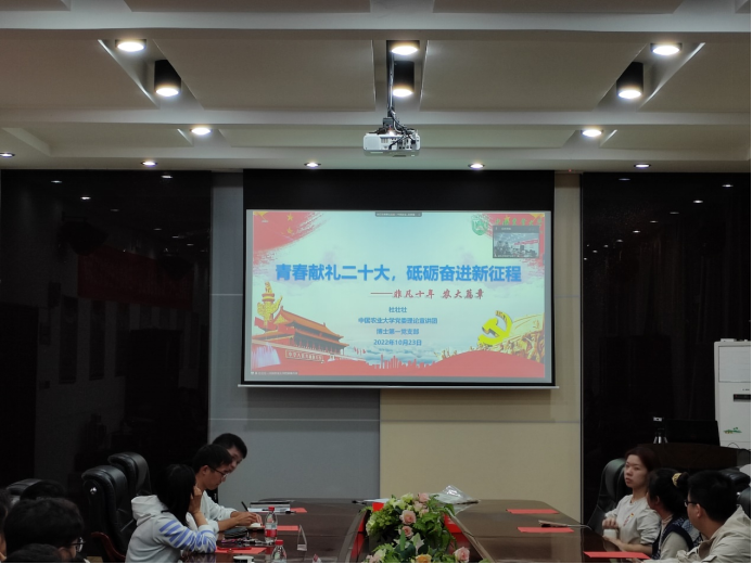 中国农业大学党委理论宣讲团讲师杜壮壮同学进行了“农大的非凡十年”的主题宣讲。他分别从“领航奋进,勇毅前行”、“培根铸魂,立德树人”、“扎根大地,强农兴农”、“笃行不怠,永续发展”四个方面讲述了十年来农大师生为全面建设中国特色、农业特色世界一流大学做出的努力。最后他表示,中国农业大学作为我国现代农业高等教育的起源地,将扎实开展党的二十大和深入学习贯彻党的二十大精神工作,继续为实现人民对美好生活的向往不懈努力,在新时代充满希望的田野上建功立业。