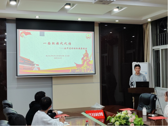 活动第五项,西安交通大学电气工程学院党委副书记宋杰做总结讲话。宋杰老师表示“西迁精神”、“红旗渠精神”以及农大的非凡十年都包含艰苦奋斗的精神,一段精神的来历并不仅仅是一段简单的故事,而是一段历史,我们要结合历史去学习精神内容。我们作为青年人,尤其是青年党员应该认真学习二十大精神,要有担当意识。党支部要始终坚持用习近平新时代中国特色社会主义思想武装青年,用辉煌成就激励青年,以复兴使命引领青年,以伟大革命动员青年,以团结奋斗凝聚青年,使广大青年投入到全面建设社会主义现代化国家新征程中去。