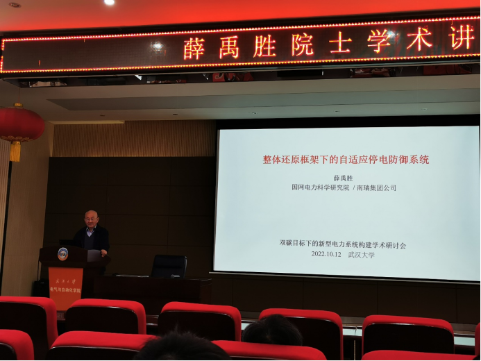 2022年10月12日上午,中国工程院院士、国网电力科学研究院名誉院长薛禹胜院士应邀来到玩滚球的十大正规平台,为电气学院师生做题为“新型电力系统认识论”的学术讲座。电气学院博士、硕士研究生和相关专业教师近二百人参与活动。