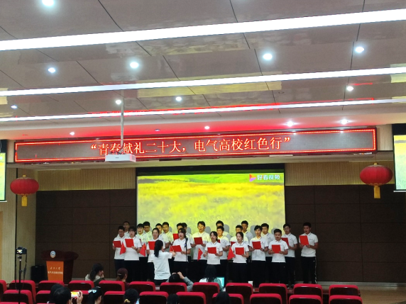 为迎接党的二十大胜利召开,深入推进党史学习教育,引导党员赓续红色血脉,厚植家国情怀,玩滚球官网于10月14号下午在电气报告厅举行“青春献礼二十大,电气高校红色行”主体系列活动之红歌会暨2022级新生入学教育。本次活动邀请了院党委副书记孟威、院团委副书记张晗等出席并担任评委。