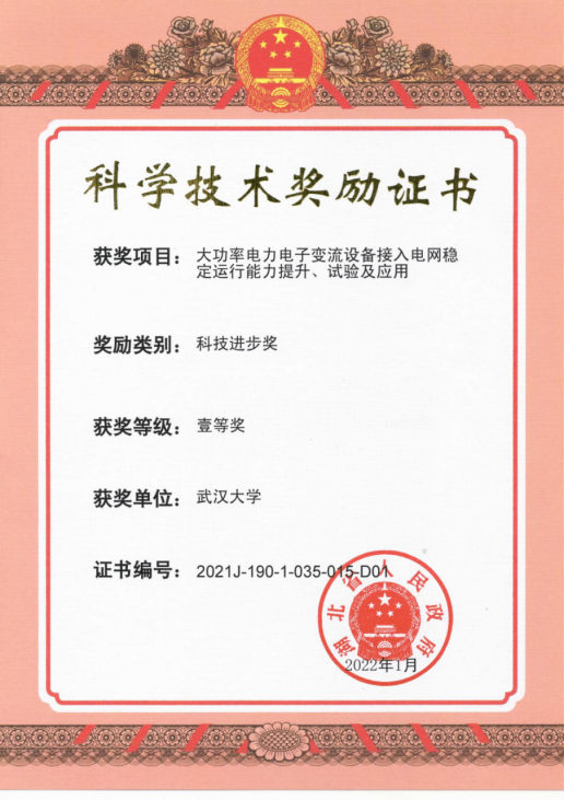 查晓明教授团队主持的项目“大功率电力电子变流设备接入电网稳定运行能力提升、试验及应用”荣获科技进步奖一等奖。主要完成人中包括课题组全体教师成员:查晓明、黄萌、孙建军、宫金武、刘飞、潘尚智、田震、刘懿。
