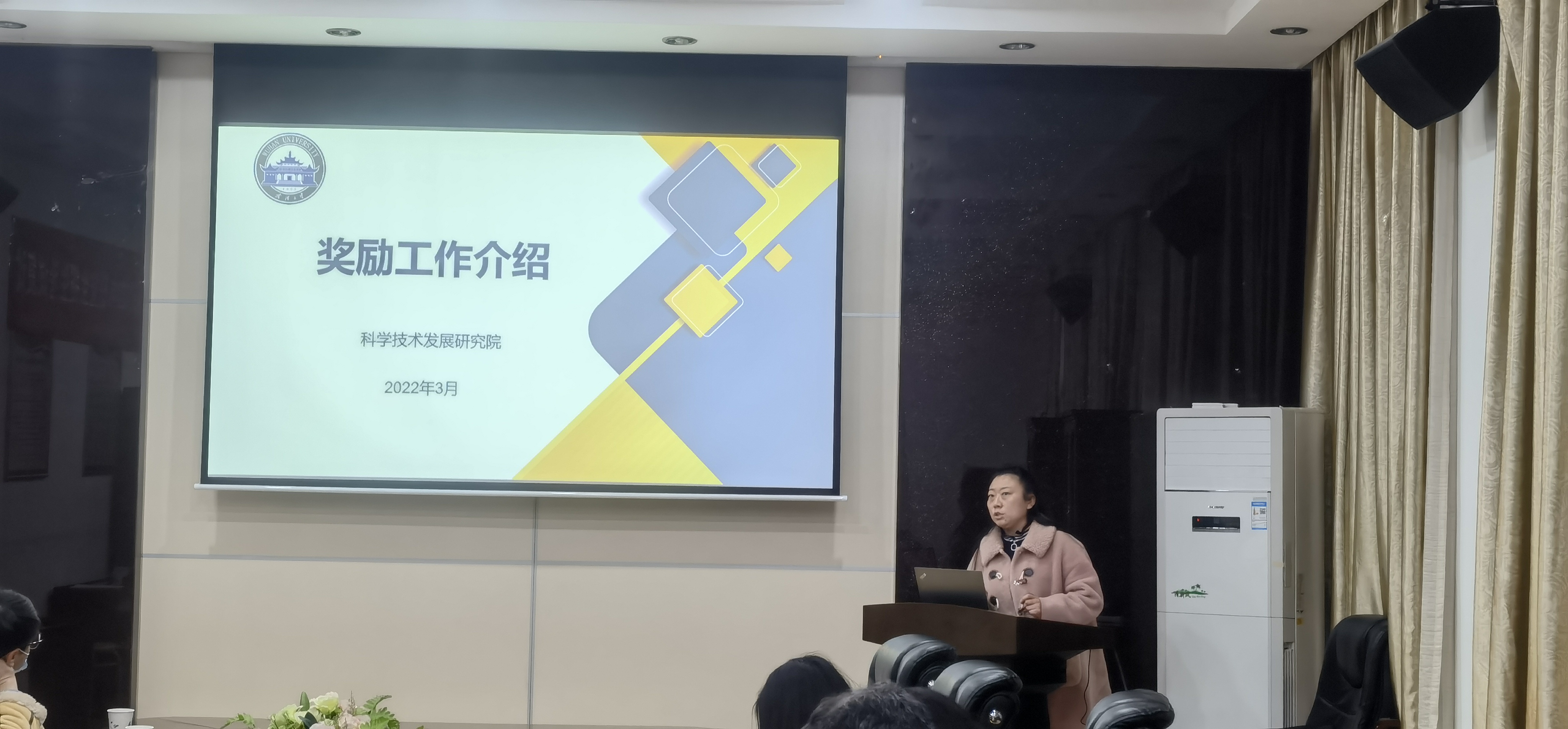 2022年3月25日下午,玩滚球官网邀请科发院李振副院长、项目处熊鸣主任、成果处殷娜主任来院在四会议室指导科研工作。李院长从自然科学基金的特点、基金评选原则、申报注意事项等方面对国家自然科学基金申报工作做了指导,殷主任从报奖流程、省奖介绍、学校高水平科研成果认定和行业奖社会力量奖设奖等4个方面对学校科技奖励工作作了详细介绍。