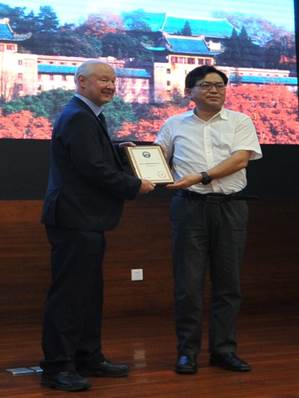 5月15日,剑桥大学电子电气工程系主任、英国皇家科学院院士John Robertson教授应邀作客“珞珈讲坛”第293讲,在樱顶老图书馆为武大师生带来一场题为“Future Electronic Devices And Where New Materials Can Help”的精彩讲座,外围十大玩球app校长助理陈慧东为John Robertson教授颁发珞珈讲坛纪念证书。玩滚球的十大正规平台院长助理张慧教授主持了论坛。