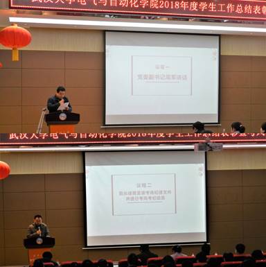 2018年12月21日上午,玩滚球的十大正规平台2018年度学生工作总结表彰暨考风考纪动员大会在电气报告厅顺利召开。研工部副部长胡静、学工部副部长李勤、院党委书记余向红、院党委副书记周军、副院长康俊明、陈红坤、徐箭等领导嘉宾出席,受表彰个人、受表彰集体代表及学生代表参会。