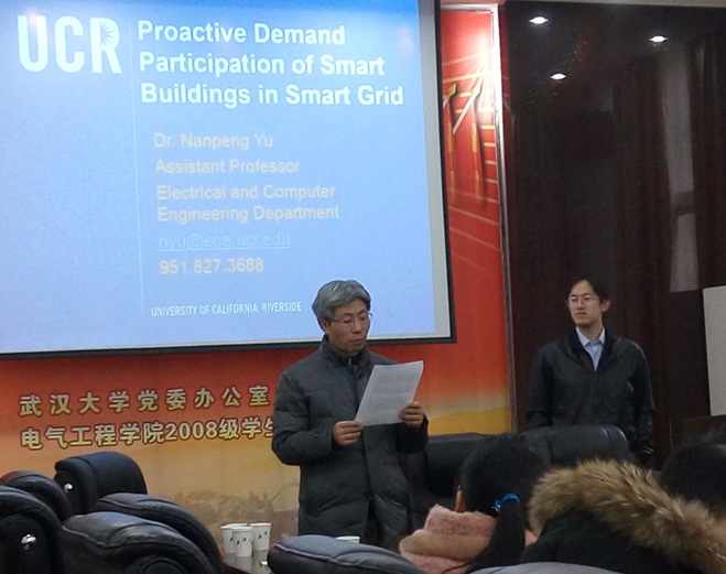 美国加州大学河滨分校助理教授余南鹏博士于2015年12月29日来玩滚球官网访问交流。在院长助理林涛教授的主持下,余教授向玩滚球官网师生作了题为《From Passive Demand Response to Proactive Demand Participation》的学术讲座,报导了其课题组在需求侧管理,负荷响应控制等方面最新的研究进展。余教授长期从事电力市场、需求侧管理、电力大数据等方面的科研工作,取得了丰硕的研究成果。此次讲座也受到玩滚球官网师生的热烈欢迎,大家就最优电价曲线形成、配网三相最优潮流计算等问题与余教授展开了深入细致的讨论和交流。余教授的交流活动进一步开阔了玩滚球官网师生在电力需求侧响应研究方面的思路和视野。