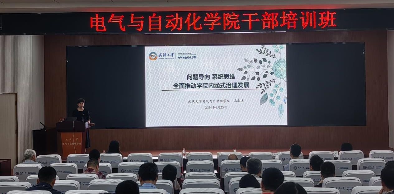学院党委书记马淑杰以“问题导向,系统思维,全面推动学院内涵式治理发展”为题介绍了学院下一步推动发展的思考。她结合学院“十四五”体规划的发展目标,通过一系列数据分析了学院目前发展的优劣势;她指出内部治理是发展根基,应当做到“沉心练内功”。她提出应通过边破边立、先立后破与先破后立等一系列方法,统一思想和目标;她强调应加强顶层谋划,实施电气学科振兴行动计划,进行学术资源优化配置,充分发挥有组织科研的作用;应当建立政策制度保障,全面理顺管理机制,构建责权对等的组织架构,建立交叉融合、通力合作、荣辱与共的学院共同体;应当实施有效激励措施,进行及时有效沟通,建立正向反馈机制,加强党建引领,推动学院高质量发展。