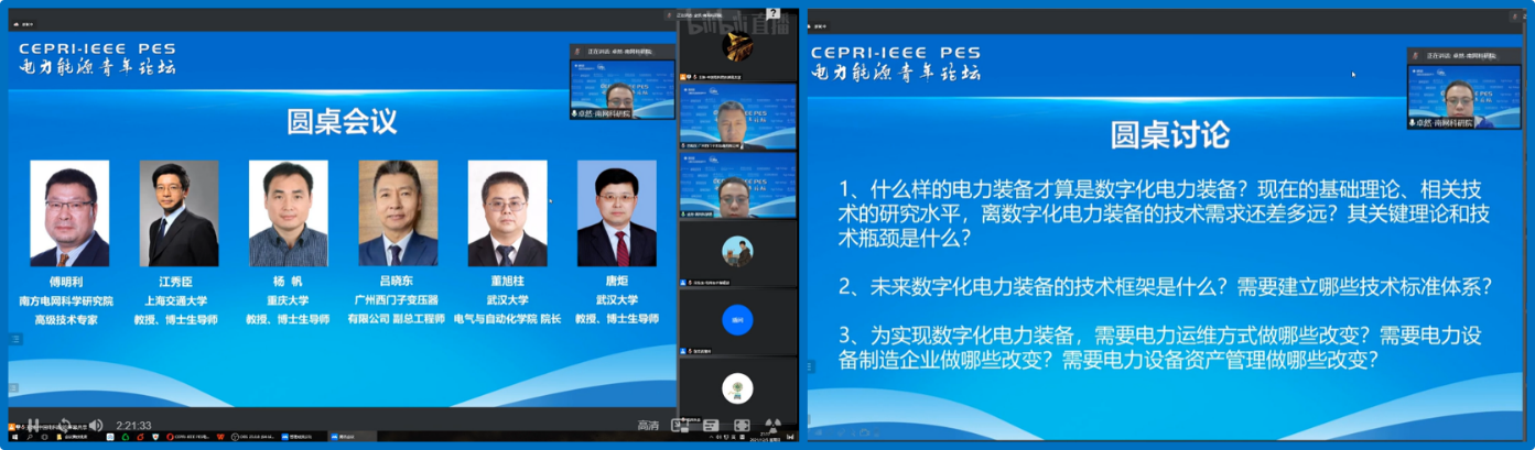 四位报告人在进行了精彩的分享之后,论坛进入圆桌会议阶段,与会嘉宾齐聚一堂,广大参会师生、行业人士就数字化电力装备主题踊跃提问,与各位嘉宾讨论什么样的电力装备才算是数字化电力装备、未来数字化电力装备的技术框架是什么、为实现数字化电力装备需要电力运维方式做哪些改变。各种问题互相碰撞,会议中互动热烈,疑问的提出和解答给与会同仁深刻的启发。