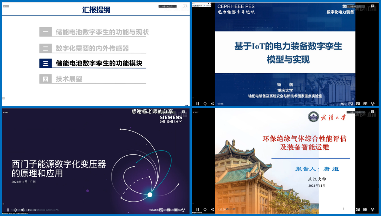 上海交通大学江秀臣教授以大规模化学储能电池的数字孪生为主题,分别讲述了储能电池数字孪生的功能与现状,数字化需要的内外传感器,储能电池数字孪生的功能模块和技术展望四个部分。重庆大学杨帆教授以基于IoT的电力装备数字孪生模型与实现为主题为大家做了主旨报告,从数字孪生相关技术发展、装备领域数字孪生技术框架引入基于IoT的电力装备数字孪生模型与实现,展示了电力装备数字孪生在设备的预测、仿真分析,复杂产品的设计、仿真验证方面的应用。广州西门子变压器有限公司副总工吕晓东以西门子数字化变压器的原理和应用为主题进行了讲解,介绍了西门子公司产品以数字化全球化城市化人口结构变化和气候变化为推动力,大力发展数字化产品,加强数据的管理和学习,同时展示了数字化装备在气体密度检测、产品寿命预测等方面的应用。外围十大玩球app唐炬教授通过SF6绝缘气体引入,以环保绝缘气体综合性能评估以及装备智能运维为主题为大家做了精彩的分享,为老师同学们在环保绝缘气体和装备智能运维的研究方面开辟了新的思路。