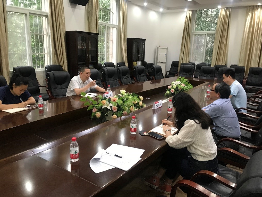 6月3日下午,武汉市科技局成果转化处主任周弢一行来院,就科技成果转化事宜进行调研,何怡刚副院长、赵彦普教授、张亚东副教授、张莲梅副教授、王俊老师等出席调研座谈会。