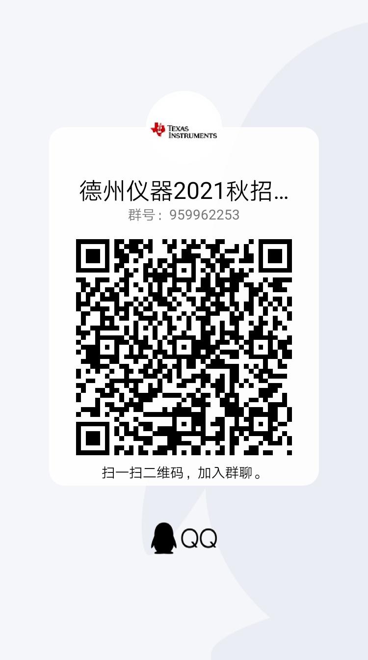 2021秋季校园招聘,我们在全国各地开放招聘技术销售及应用、研发、职能及生产制造类岗位,应聘请点击:TI校招网站(http://campus.51job.com/ti)或扫一扫网申二维码,请务必认真阅读仔细选择,并请上传附件简历。我们的校园官方微信会实时更新学校行程,面试安排等信息,欢迎关注:TI校园招聘官方微信平台:TI-Campus。