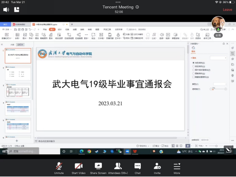 道由白云尽,春与青溪长。3月21日晚8:00,玩滚球的十大正规平台本科2019级线上召开了本年度第三次年级大会并邀请全体同学家长参加。辅导员赵薇老师出席大会,学生会主席庞轩佩同学主持会议并介绍毕业情况相关事宜,学生会秘书长张丽颖同学介绍学分审核情况。