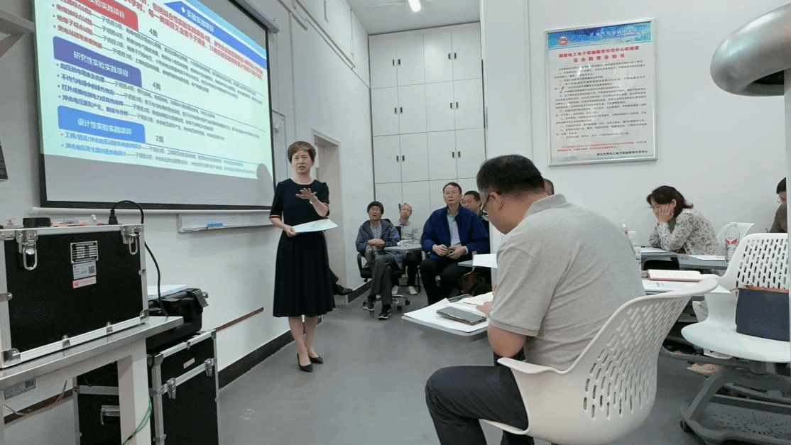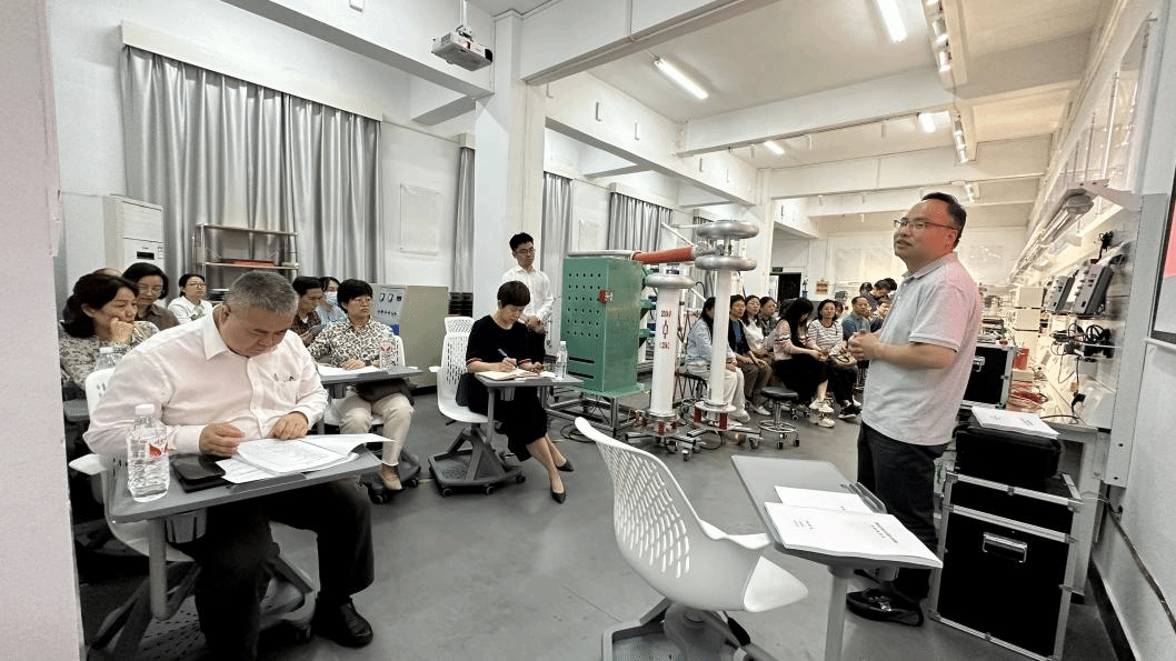 会议伊始,由《高电压综合试验与实践》课程负责人周蜜副教授从《高电压综合试验与实践》课程基本概况、课程历史回顾、课程条件建设、教学实施方案、开设实施项目和未来建设思路六个方面来介绍该实验课程的整体情况。周老师强调,要建设出对学生有用、让学生喜欢的实验课程,必须深入了解学生的需求和兴趣,不断调整和完善教学内容和方式。他表示,课程组老师们经常一起讨论、交流,共同研究如何更好地提高实验课程的教学质量和效果。同时,他们还积极引入新技术、新设备,不断提升实验课程的现代化水平,以更好地满足学生的学习需求。