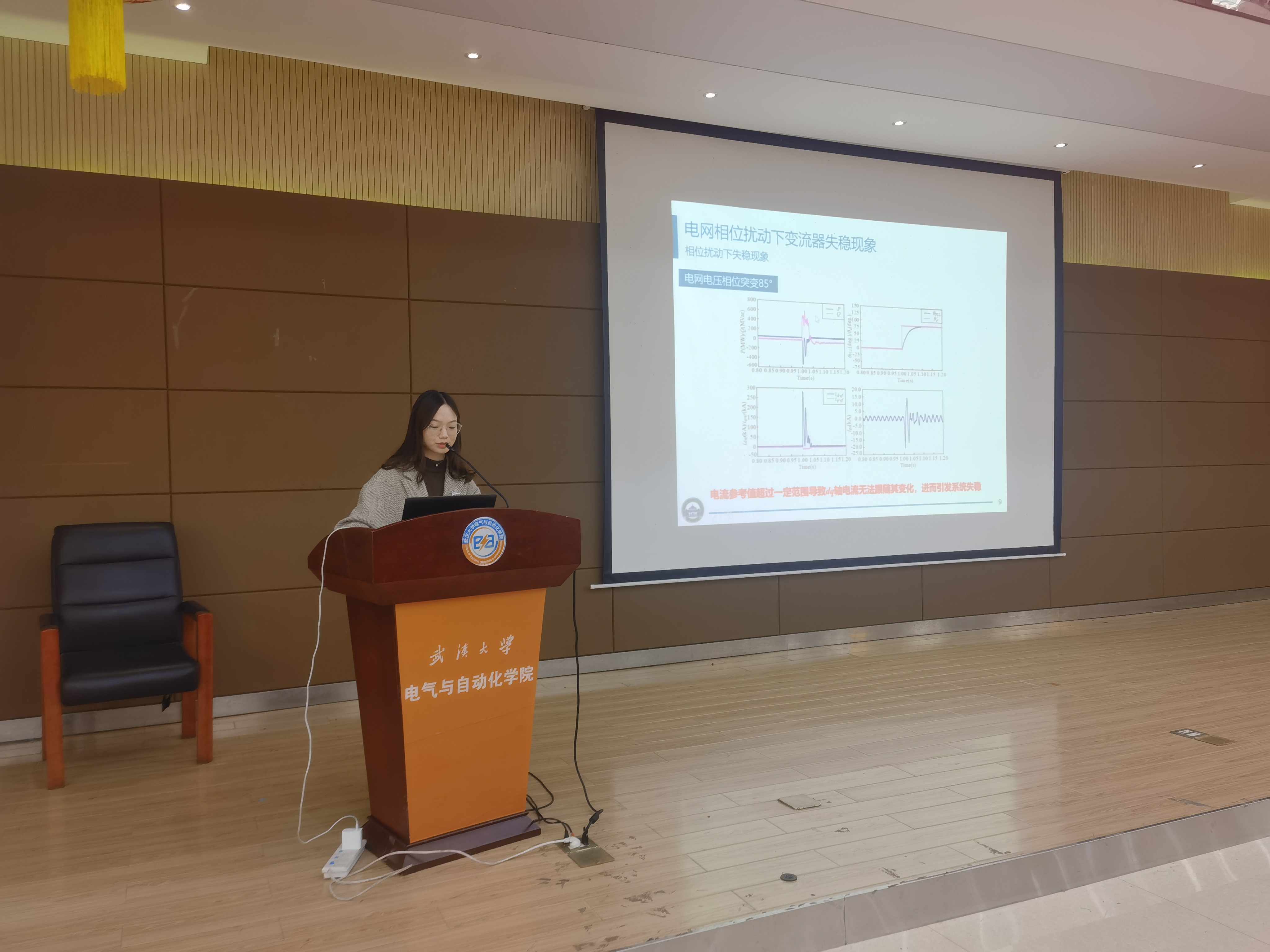 随后,谢仕炜、李祎、刘浴霜、曾德斌、陈晶等5名博士研究生代表针对自身的科研方向和阶段性成果作主题报告,涉及电力-交通网络、环保绝缘气体、变流器运行、催化材料、无线电能传输等多个研究领域。与会嘉宾认真聆听,并从报告内容、研究方法、实施方案以及汇报技巧等多个方面进行深入讨论和点评,针对同学们研究中出现的问题以及今后的研究思路给出了指导和建议。