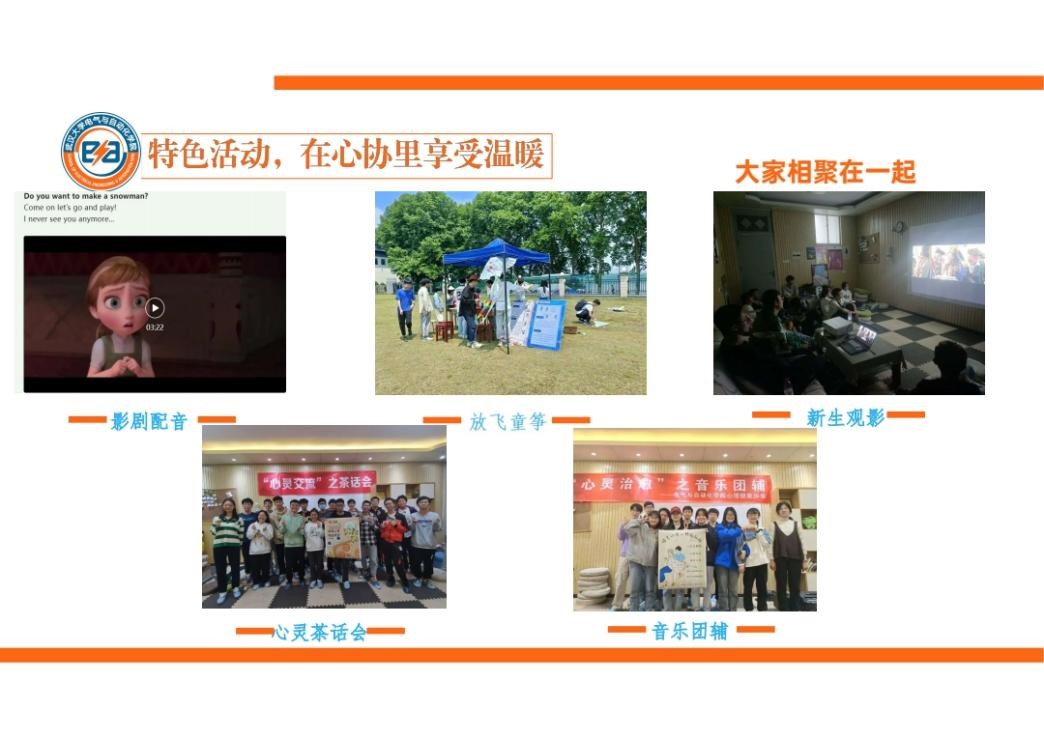 除了关心同学们的心理,我们更注重行动。这一年中心协组织“影视剧配音”,同学配音情感丰富,张力大;组织“放飞童筝”,在大学里再次找回童心;组织“新生观影”,消除新生刚入大学的不适应和不安感,加深同学之间的友谊,增强了班级凝聚力;组织“心灵茶话会”,在紧张的期中备考时间缓解同学们的紧张感;组织“音乐团辅”,引导同学放声歌唱,享受音乐。一切的种种都是为了舒缓同学心理,培养更加健康的心态,更好地应对大学生活。
