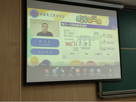 接着,清华大学郭庆来教授以电力系统为主题展开发言。我国电力工业已经创造了多个“第一”:最大的水电站、最大的抽水蓄能电站、最高的交流输电电压等级……郭庆来教授鼓励同学们在未来的电力系统中创造更多“第一”,助力实现双碳目标,把握潮流,发展新型电力能源。