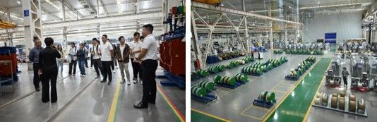 随后,学院师生一行在彭总引导下参观了金盘科技的生产车间:既有厂房上面都是光伏发电板和环保材料组成的“金盘绿色车间”,也有装配核心产品的干式变压器车间,更有生产储能设备“巨大的充电宝”车间,还有生产效率极高的数字化自动化智能制造厂房。