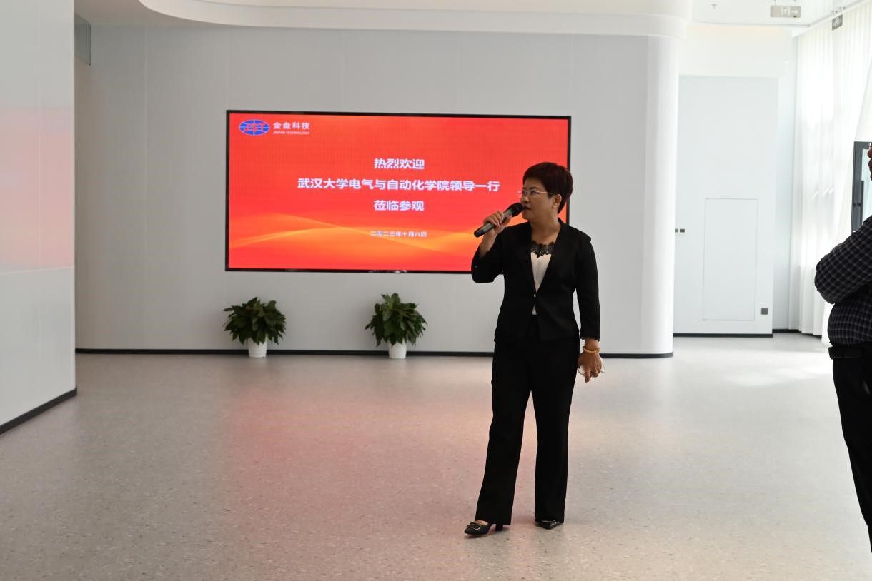 武汉金盘智能科技有限公司副总经理彭丽芳热情接待学院师生。她为大家讲述了金盘集团的发展历程、金盘科技产业园的建设情况以及集团六大产业,特别介绍了金盘科技“变压器”等产品极高的市场占有率、国际领先的技术水平。