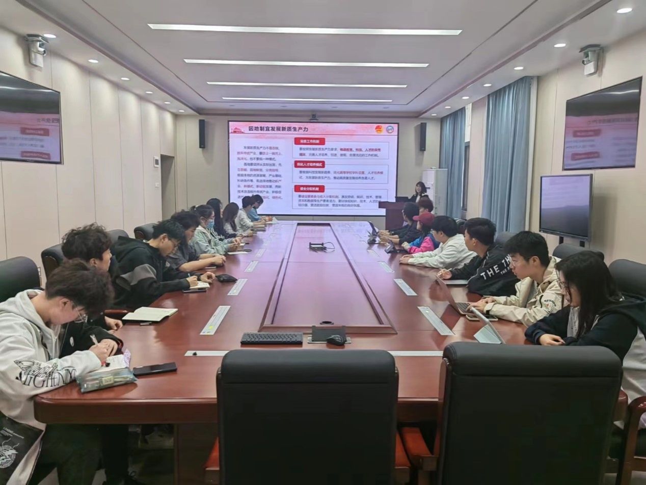 2024年4月8日,玩滚球的十大正规平台团学骨干在学院第四会议室集体学习“新质生产力”。有学生团委副书记张铮妍主持理论学习。